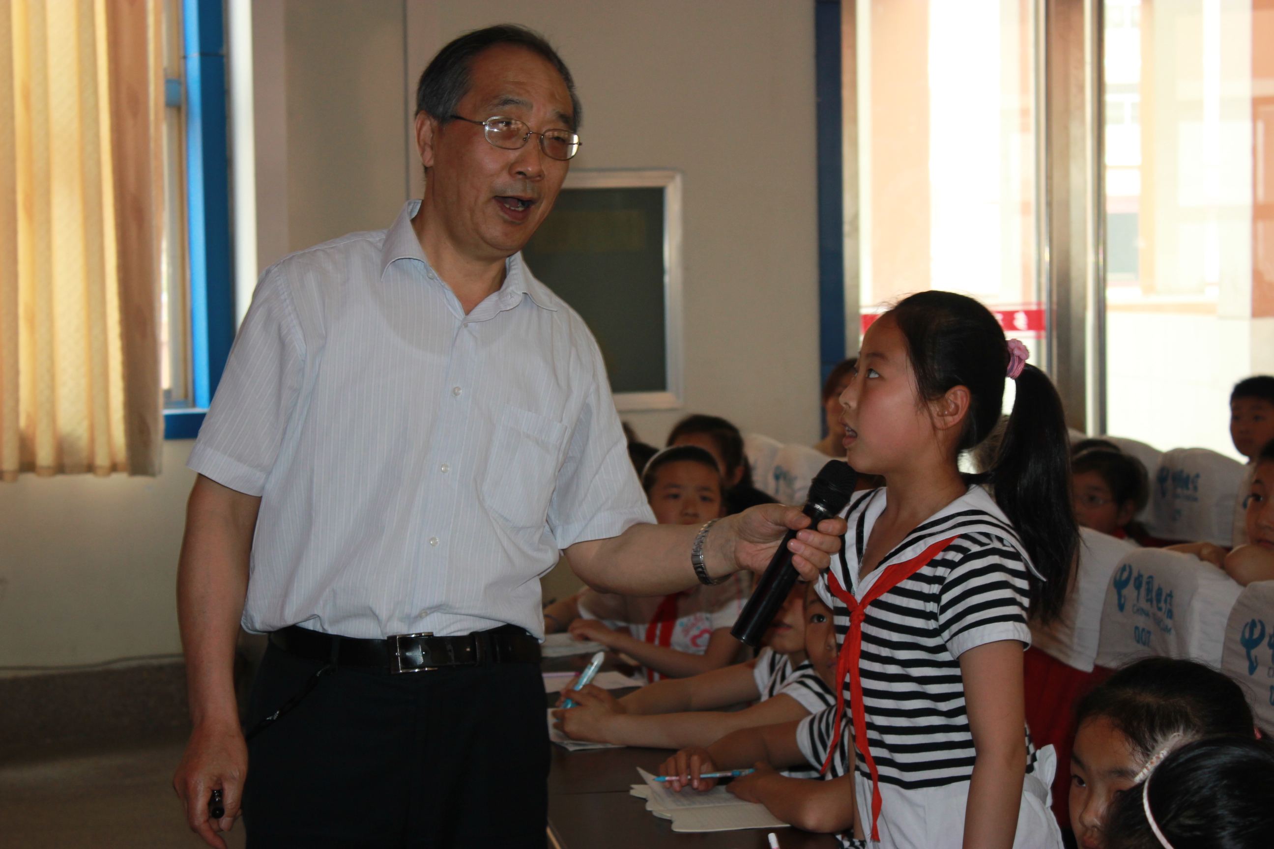 伴随着热烈持久的掌声,科普专家张继民和市区领导健步走进鑫昌路小学学术报告厅。少先队员代表手捧鲜花向张继民爷爷致敬。