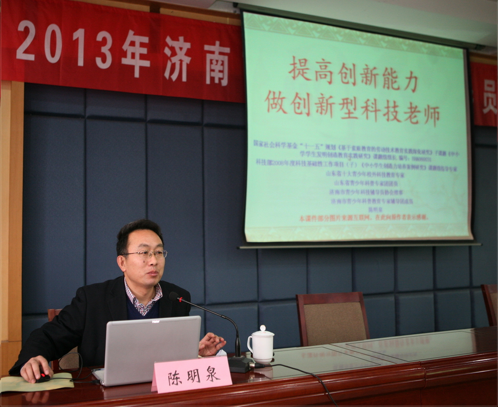 中国发明协会会员,中国创造学会会员,中国创造学会讲师团讲师陈明泉做了题为《提高创新能力,做创新型科技老师》专题报告,受到科技辅导员欢迎。